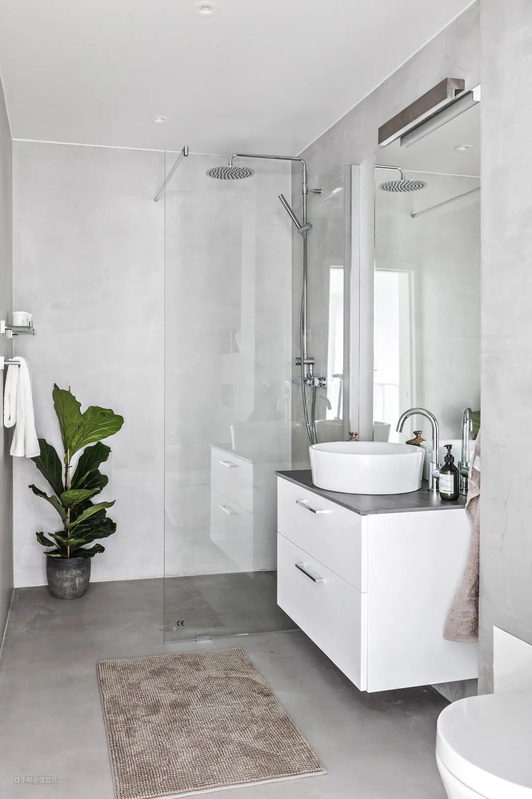国外浴室美图里常见的玻璃隔断,在淋浴区空间大的时候反而更好用,比浴帘干净利落,又没有淋浴房看着那么挤。