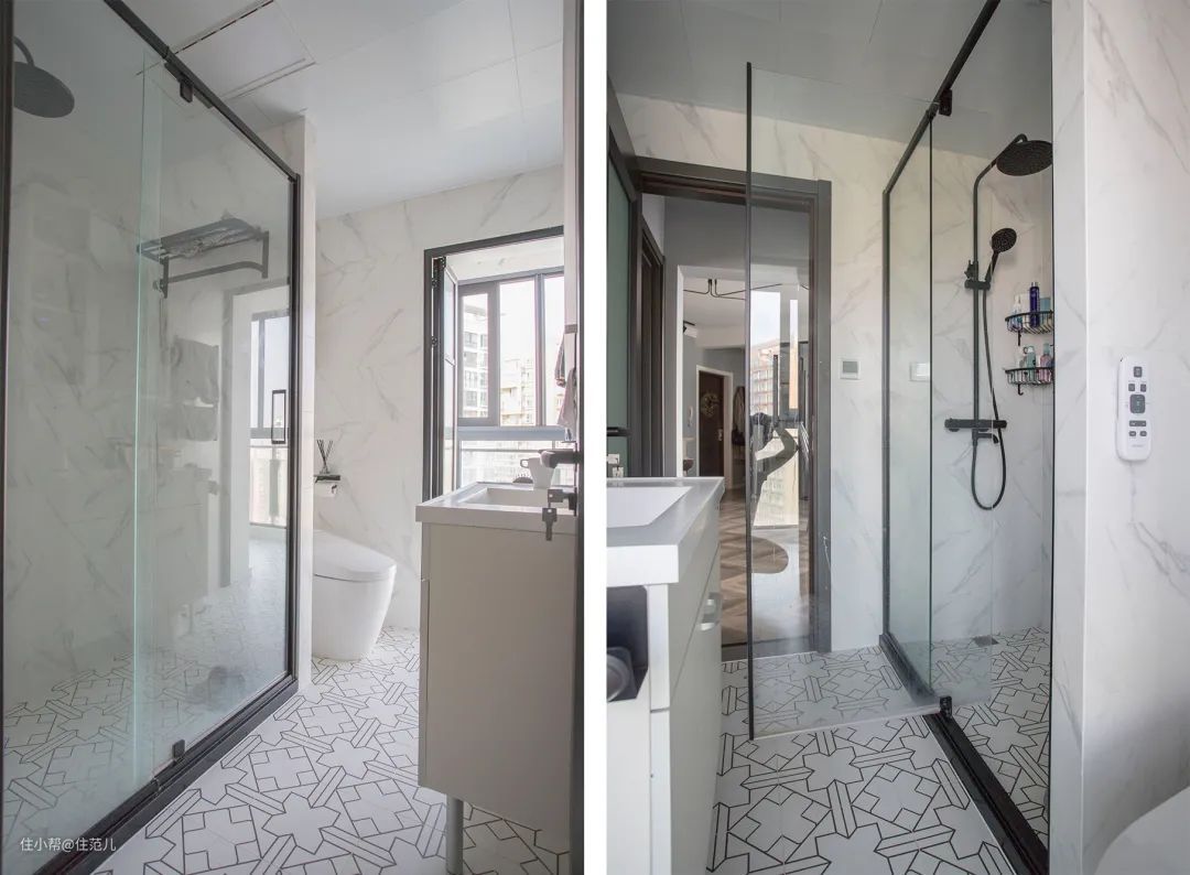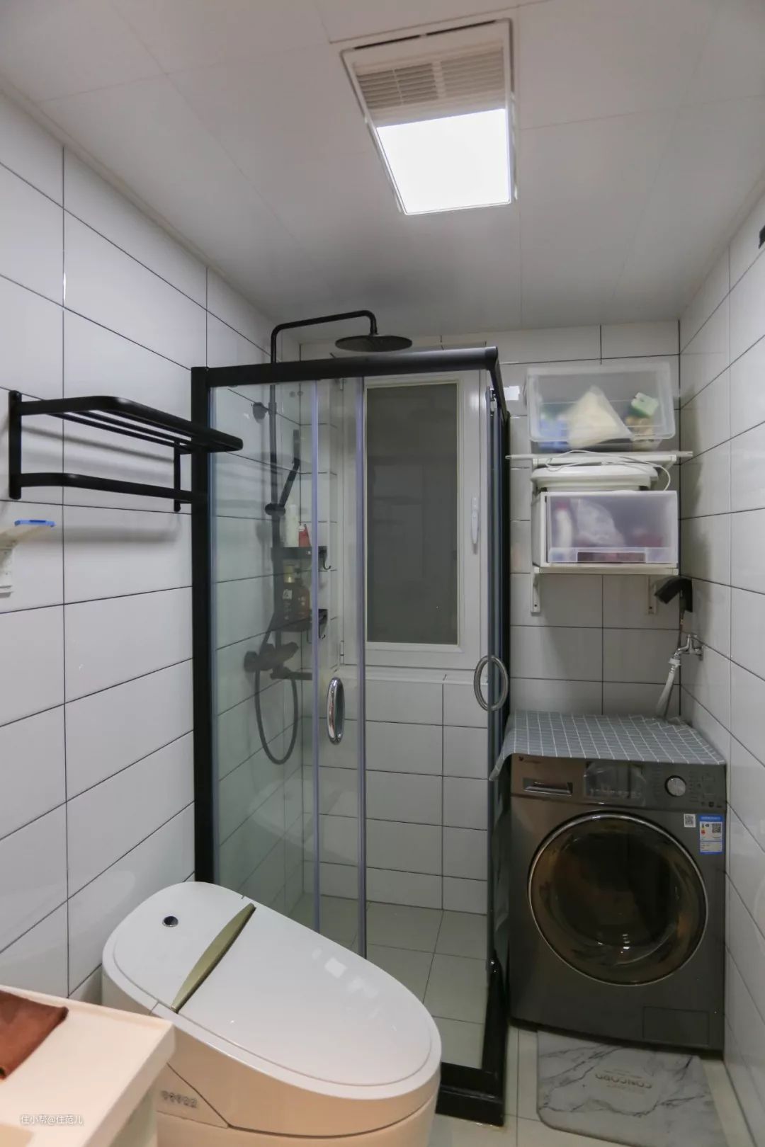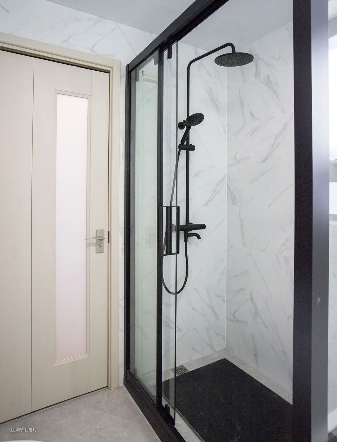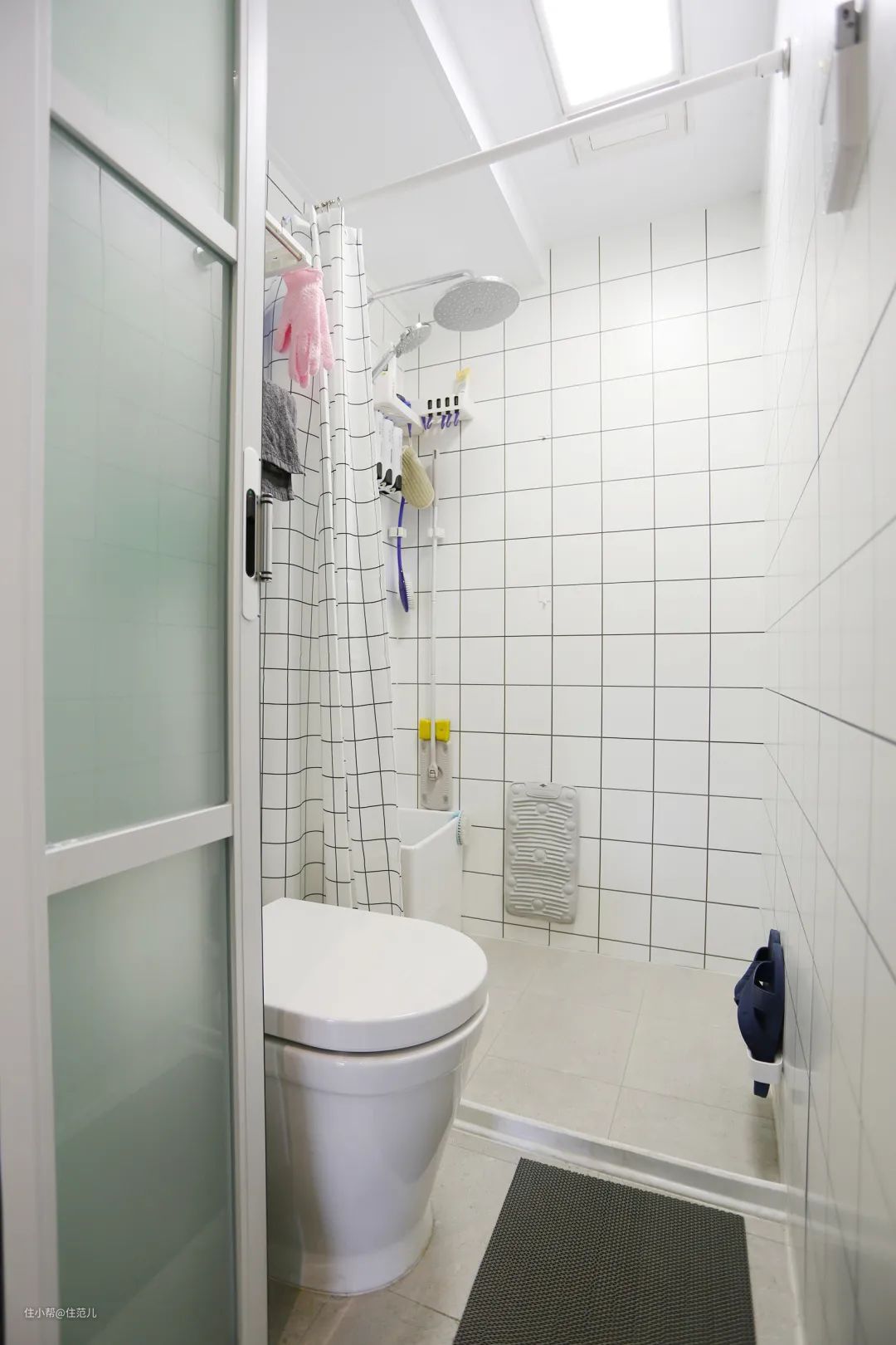 住范儿客户Alice家的淋浴房原来是标准的转角型,另一边砌了一堵砖墙,改成一字型的淋浴房,分区更明确,相比于玻璃墙,砖墙既省钱又方便清洁。
