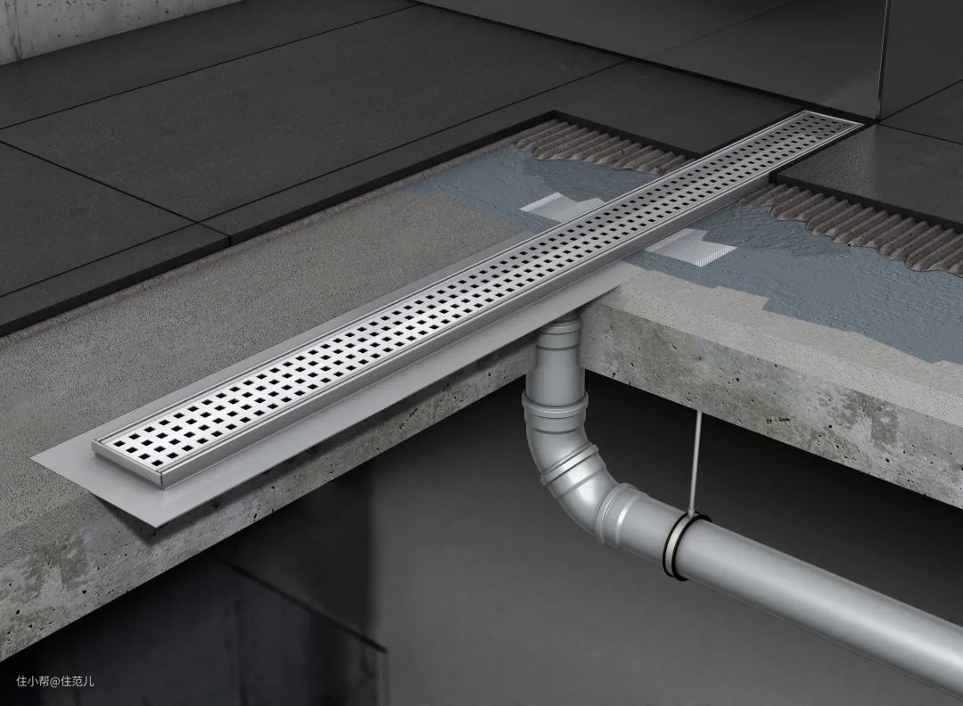 这样用长条地漏把干区和湿区的地漏合二为一,也就避免了需要经常冲洗干区地漏的麻烦。