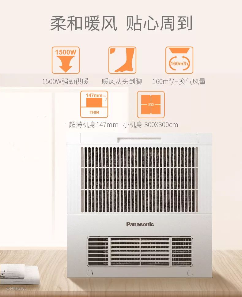 稍小一些的机型,例如松下这款,换气量也能达到160m³/h