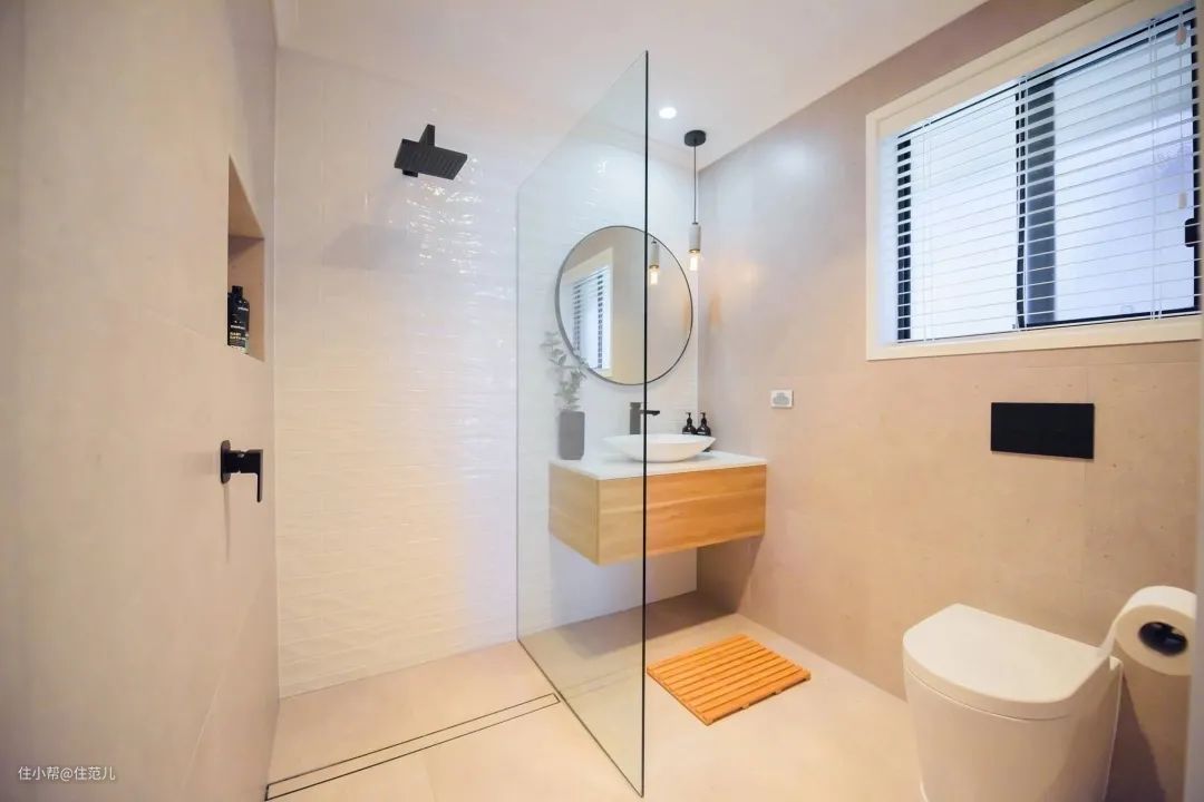我们对于干湿分离的要求,不一定非要隔断出一个独立的空间,第一步,要先做好地面隔水。