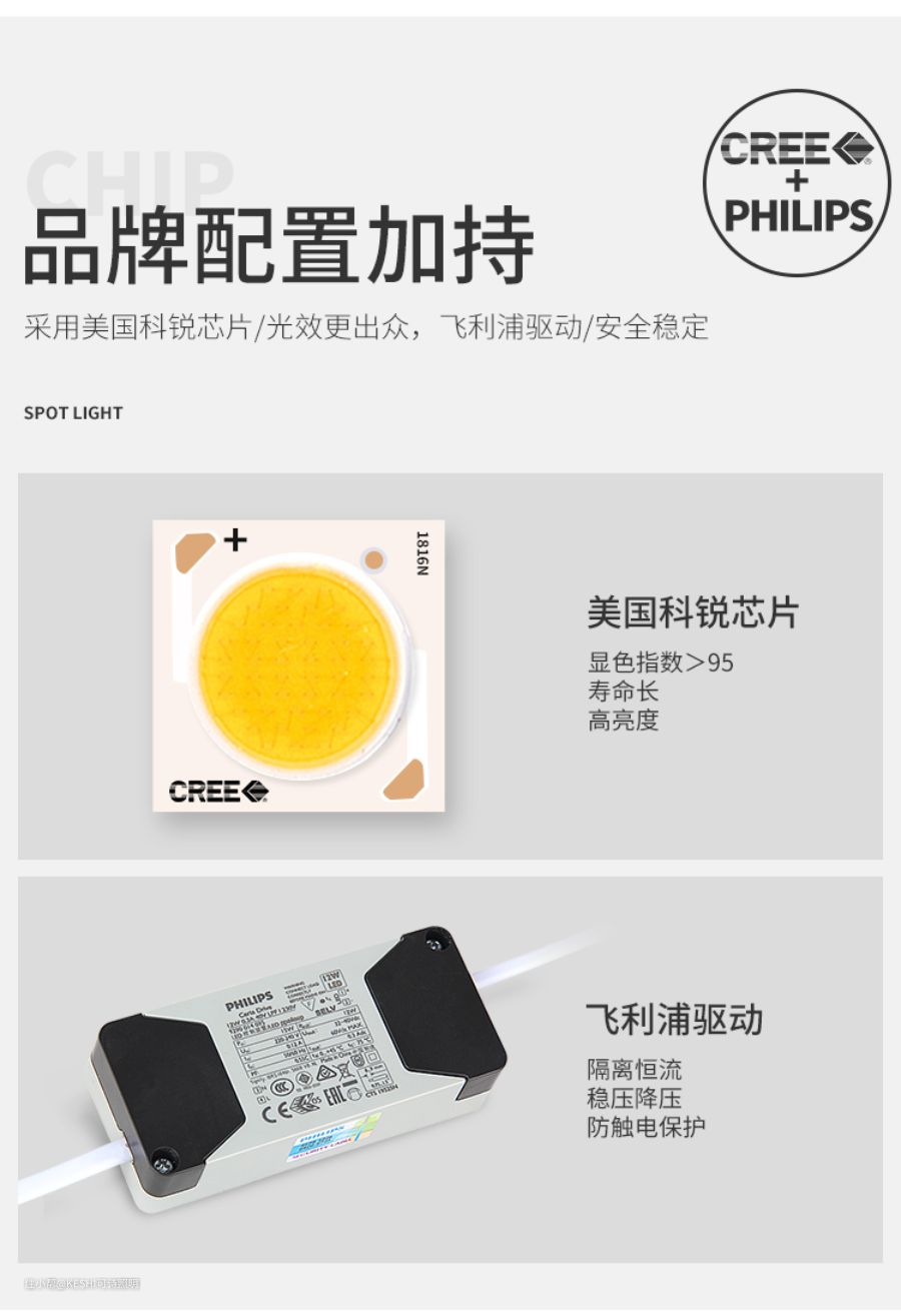 品牌配置加持,采用光效出众的美国科锐芯片,安全稳定的飞利浦驱动,品质安心有保证。