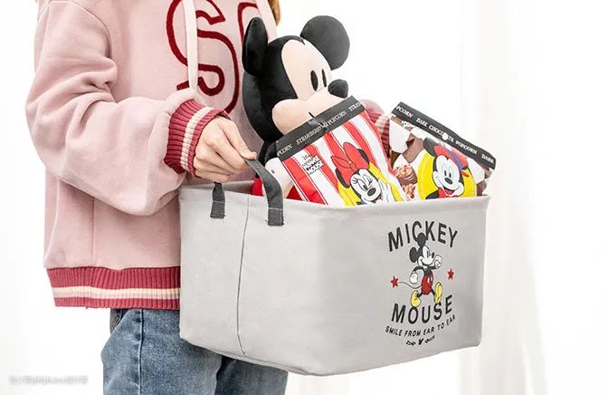 印有米奇、米妮、唐老鸭的图案收纳篮,尺寸和颜色多样选择。采用仿棉麻面料,结实耐磨,内层覆膜,外层水分不容易渗透进里面,用来收纳衣服毛巾、毛绒玩具、书籍杂志都非常不错哦!