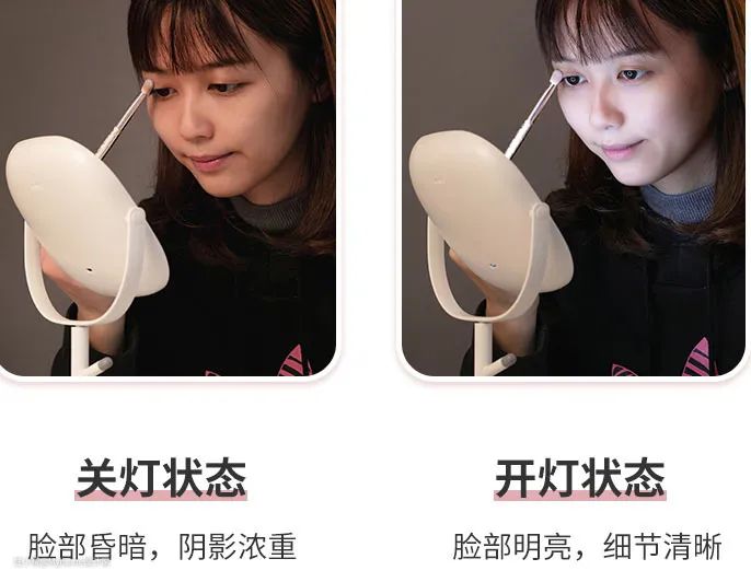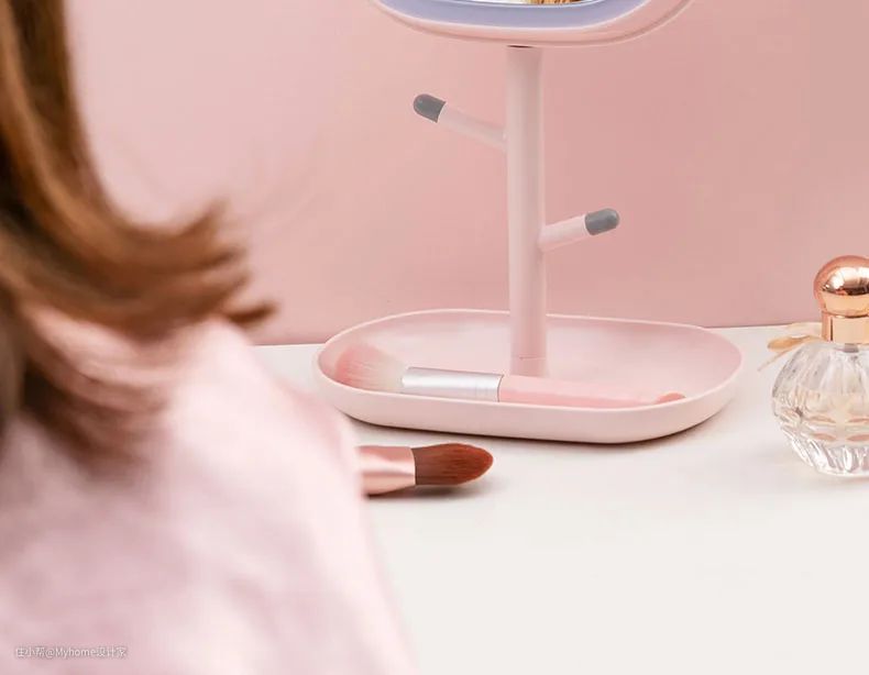 镜子照度450LUX,是卧室光的4倍多,真实照亮肤色,可以360°旋转,自由调整角度;而且树枝挂首饰,底盘放小物,收纳力满满的,并且带可充电锂电池,超强续航能力,连续9天日常化妆使用都可以。