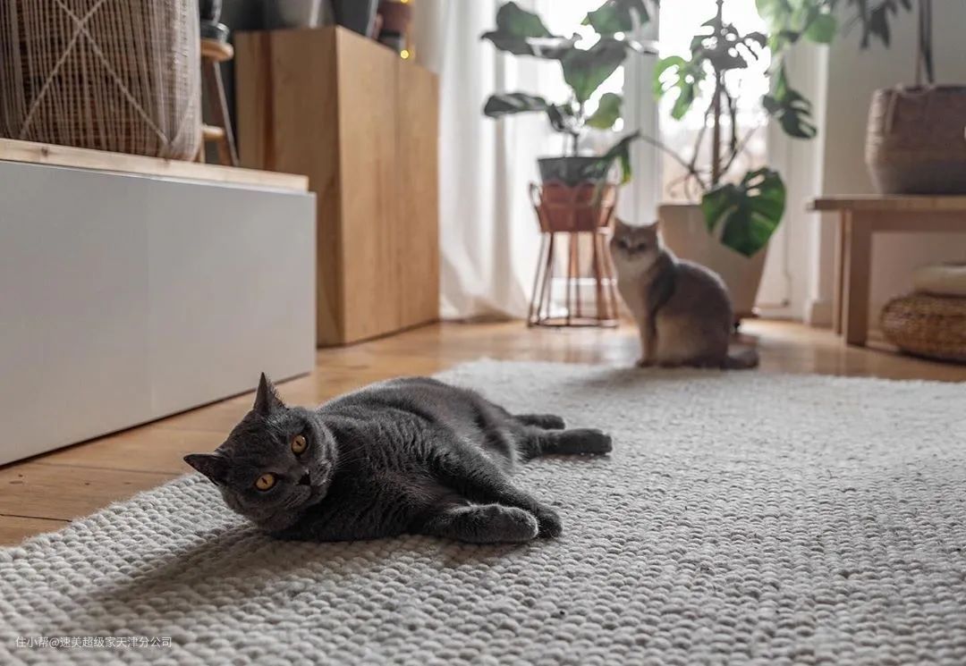 至于地毯,最好不要铺,毕竟清理起来很麻烦也很容易滋生细菌。不过一般的猫狗都对地毯情有独钟,非要选地毯的话,可以铺个小面积的作为装饰,清理起来也相对方便些。