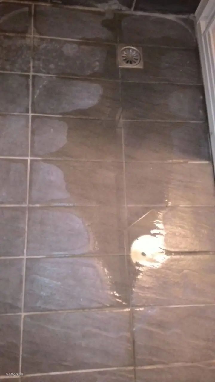 如果淋浴区的水整体是向地漏流,但局部有积水,可能是砖和砖之间有凹的位置,出现了倒坡现象,就得敲掉地板重新找坡了。