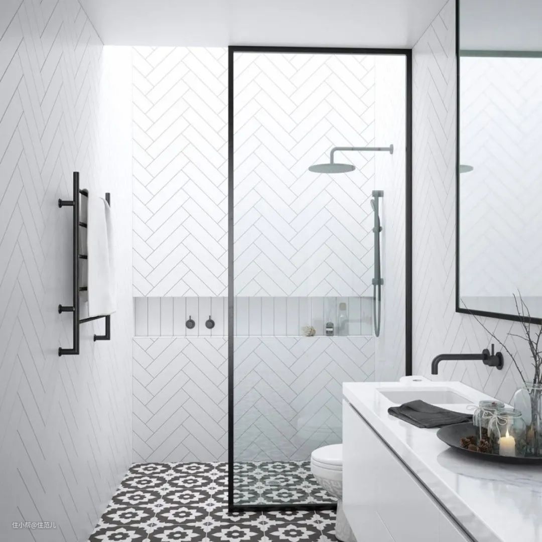 像住范儿提供的小细框隔断,也是可以用作淋浴隔断来挡水的,效果类似下图。