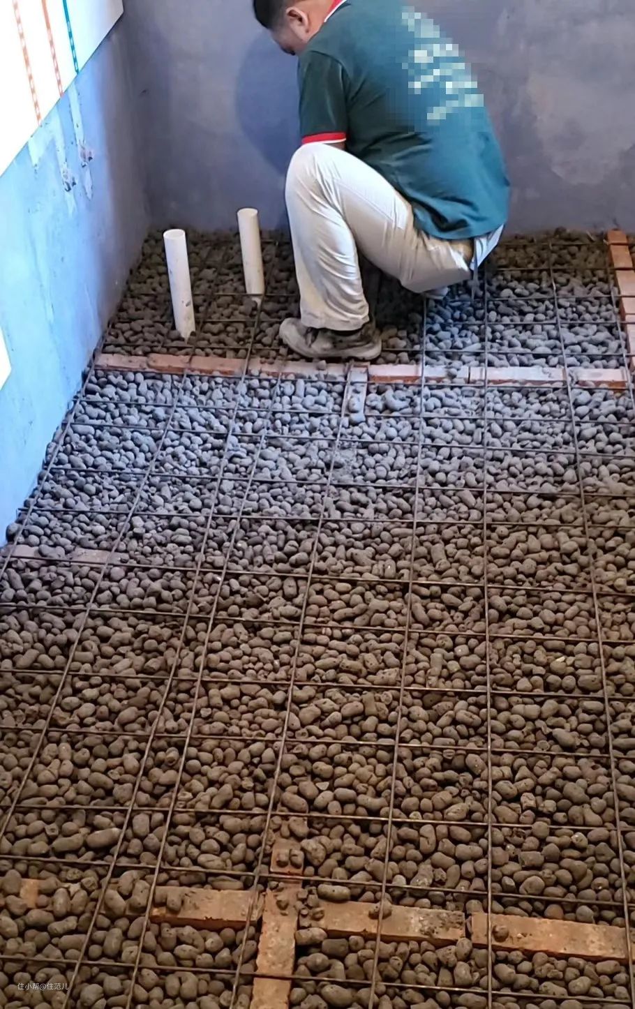 地漏的管道比较细,也不太怕堵,楼板上浅浅挖个槽,管子就拉过去了,改位置相对容易一些,尽量移到淋浴区下面,排水更流畅。