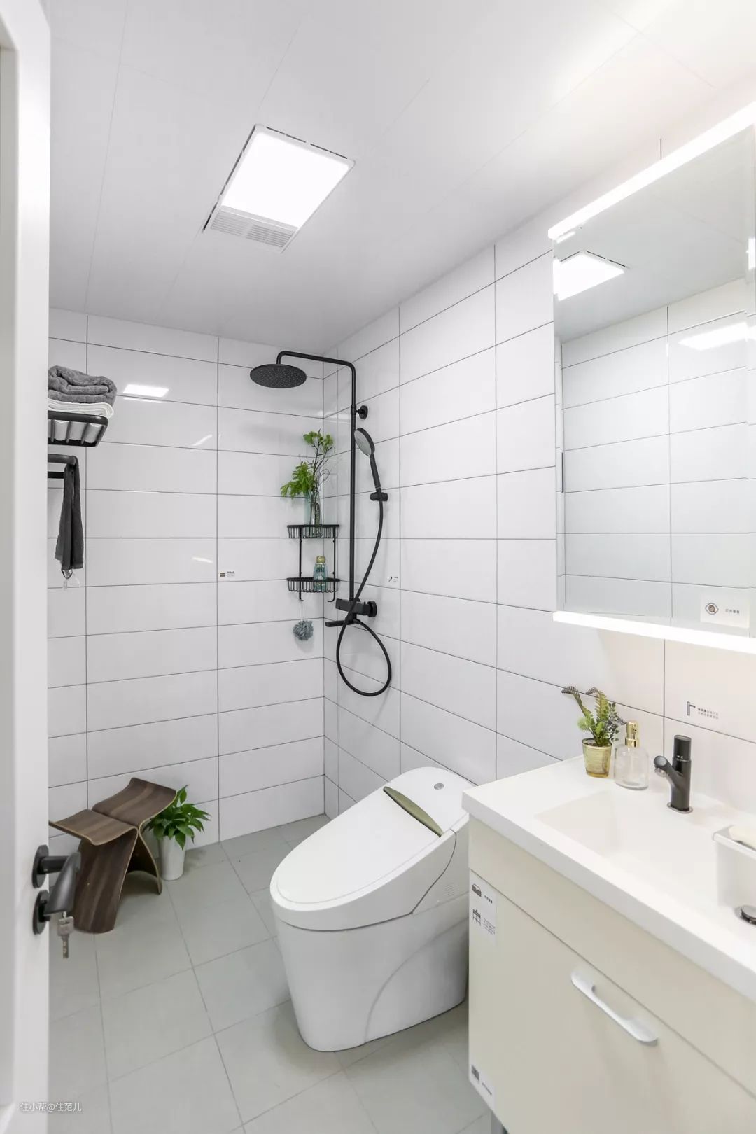 很多人都说它容易溅水,起不到干湿分离的作用,其实是没有掌握正确的使用方式——搭配顶喷花洒。