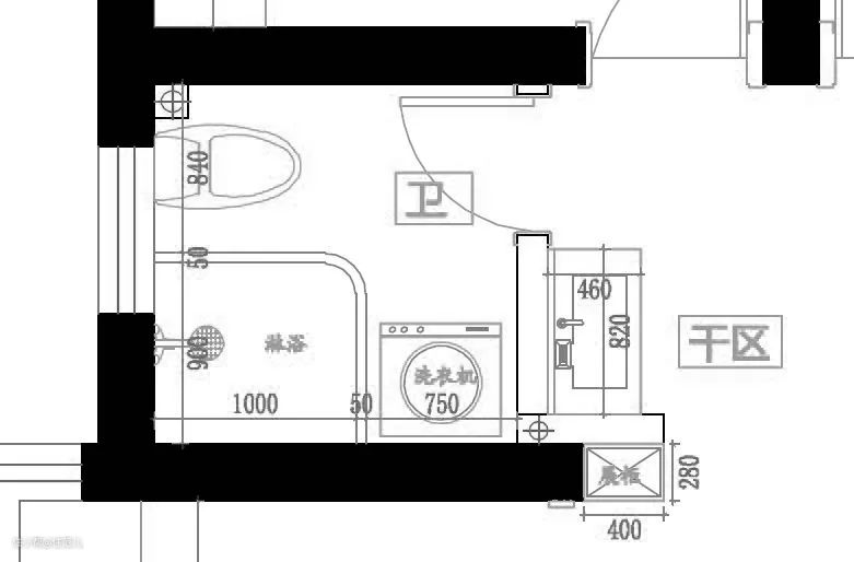 我们对于干湿分离的要求,不一定非要隔断出一个独立的空间,第一步,要先做好地面隔水。