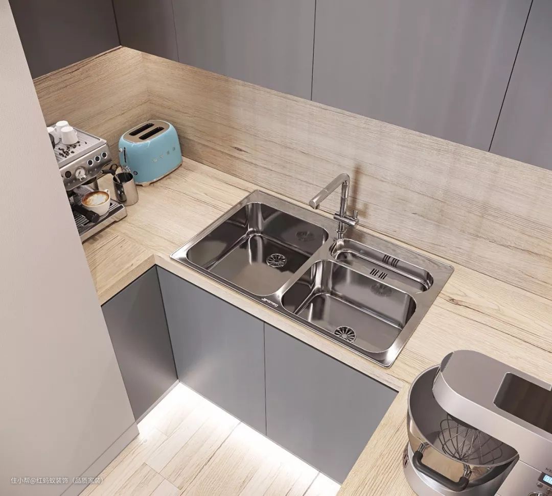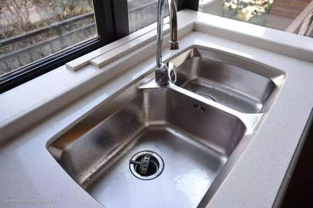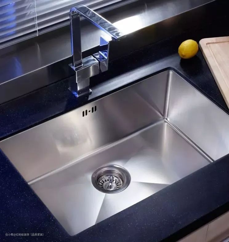 - 选择排水口位置靠后的水槽,下方会有更大的收纳空间,装垃圾处理器或净水器更方便。