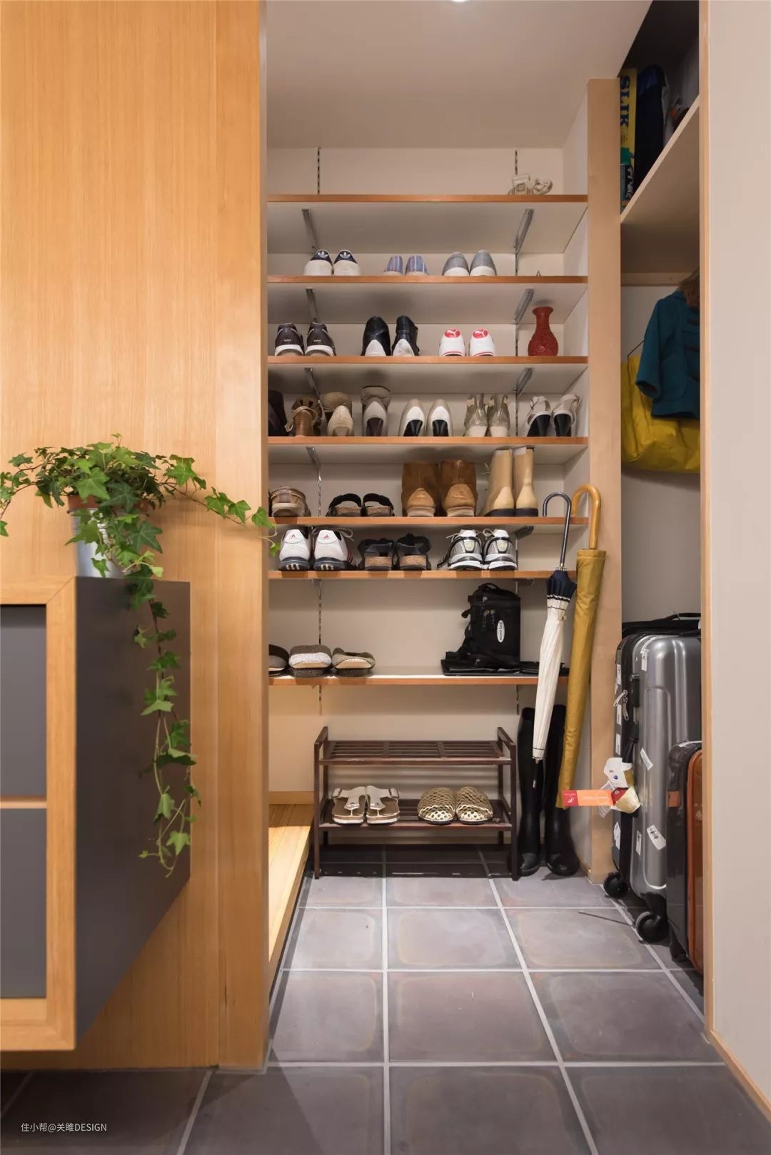 敲黑板,重点来啦,土间收纳其实可以设计成半开放的——从玄关或客厅走廊都可进入,这样既通风也不会阻碍动线。