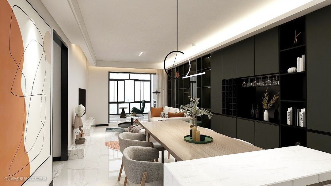 电视柜+餐桌一体设计,把餐厅功能融入到客厅区域,让小户型更加实用舒适。