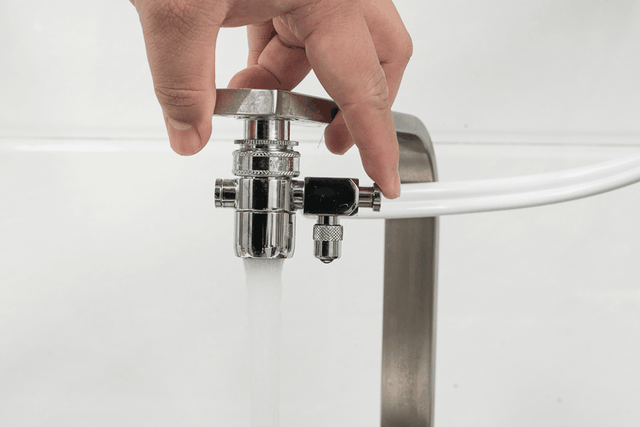 ▼拨动推杆,就可以在原水和净化水间切换了。