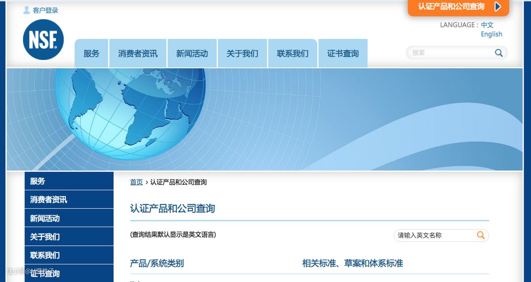▼NSF作为中立的第三方对美国以及国际标准的认证资格得到包括美国国家标准研究院(ANSI)、美国职业安全与健康行署、加拿大国家标准委员会等13个国家或行业权威组织的批准与认证。NSF是世界卫生组织(WHO)在食品安全与饮用水安全与处理方面的指定合作中心。相关认证信息可以在nsf网站上查询