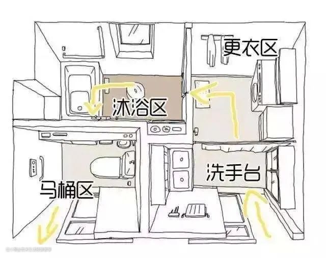 这个恐怕是大家最常听到的日本与我们的设计差异,也是日本家庭设计非常巧妙实用的一点。把卫生间每个功能都拆分成一个个独立的空间,家庭成员可以交叉使用且不会相互干扰,而我们的卫生间基本上都是功能集中的设计,如厕、沐浴、洗漱都在一个空间,难免会造成拥挤和不便。