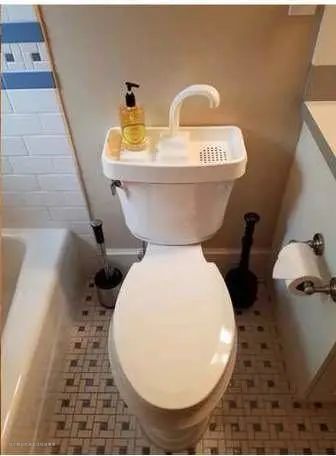 ▲节水马桶,洗手的水用来冲马桶