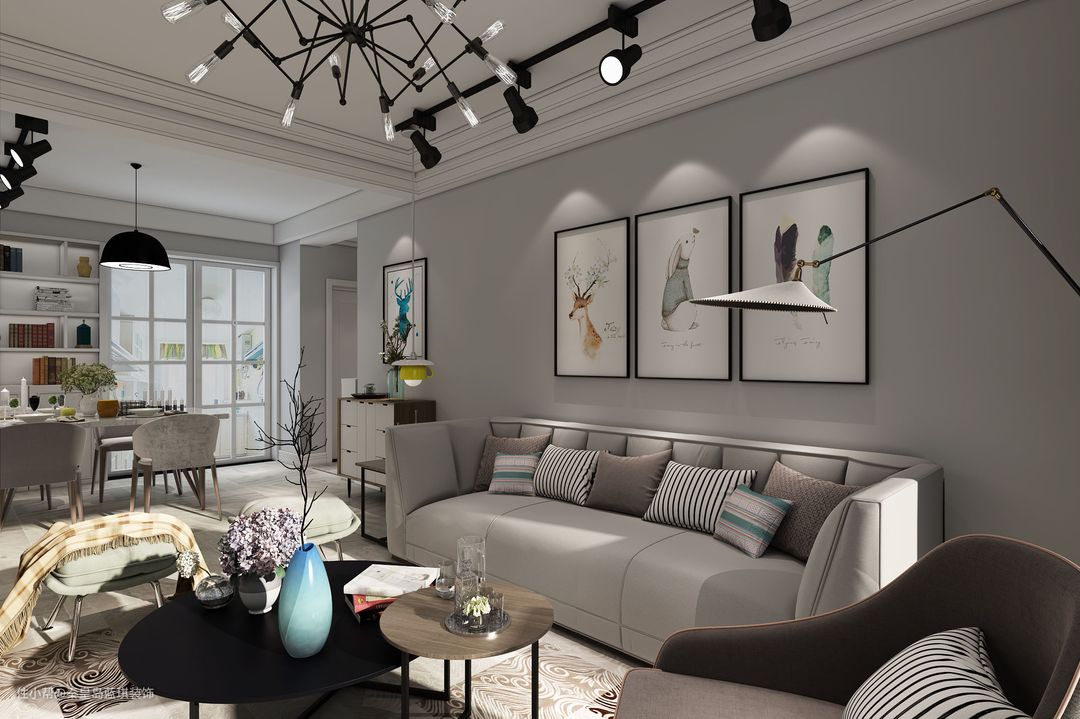 黑色和白色背景与灰色在北欧客厅当中搭配起来很好,这样看起来更像是现代简约与城市经典相结合。但请注意黑色需要谨慎使用,只能是在客厅固定的区域或想突出某些建筑特色时使用,过多的黑色会迅速改变情绪和室内的吸引力。