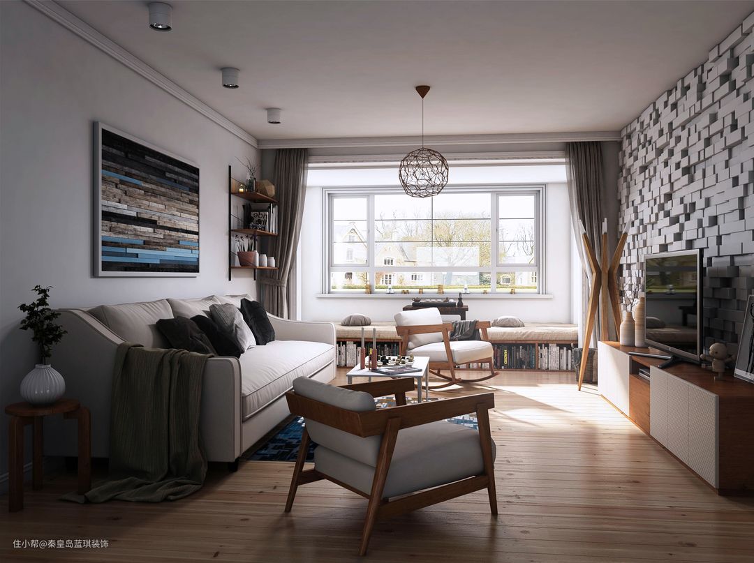 在客厅当中延续北欧风格,不仅能够帮你去除多余的装饰,同时也向你展开了一扇通向精彩与可爱色调点缀的世界的大门。几何印花,条纹,人字形图案和抽象设计提供了欢快,兴奋和个性的北欧客厅。不仅仅图案可以创造不同,加入客厅的各种色彩也会在巧妙风格的背景下创造效果。