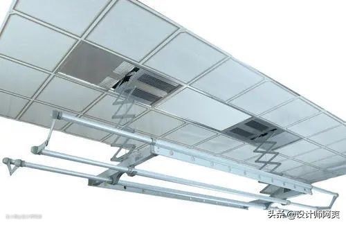 很多人会装电动晾衣架,那最好做集成吊顶,不过要注意它不能直接固定在吊顶龙骨上,必须要用膨胀螺丝帽固定到天花板上。也可以在天花板装上装加长的支撑杆,然后再与晾衣架连接。