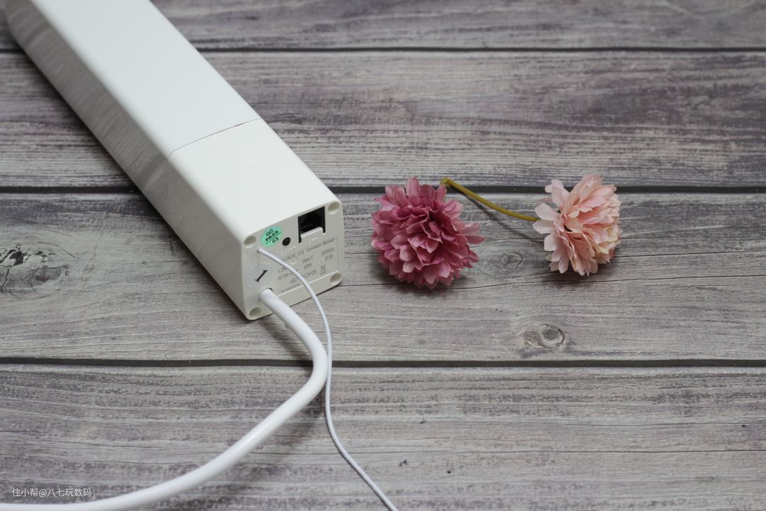 电机的底部是电源线、无线接收信号线,接口方面包括了重置按键及网络接口。小益C3电动窗帘采用了WIFI+蓝牙的双模设计,无论是小爱同学还是天猫精灵都能对电动窗帘进行控制。