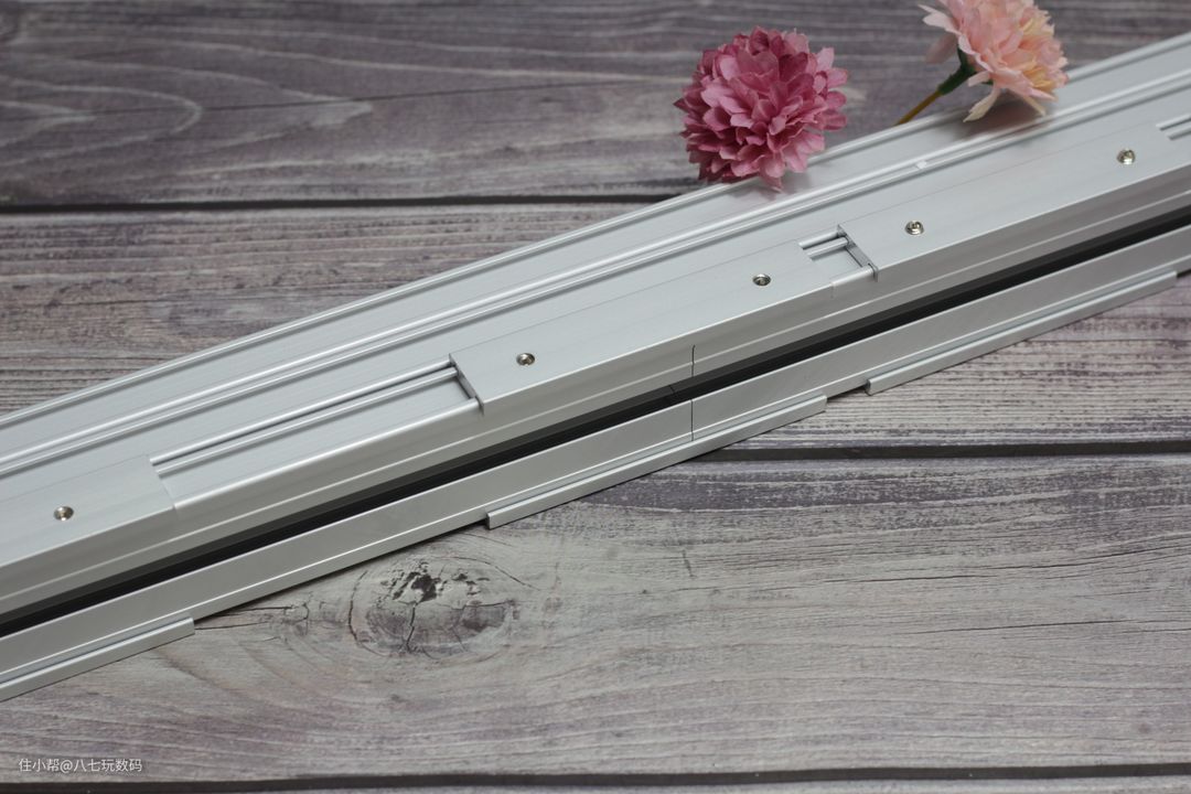 小益C3智能电动窗帘轨道采用了铝合金材质,做工扎实印有不错的承重能力。而且轨道采用了分段式设计,根据使用需求自由组合所需的轨道长度。