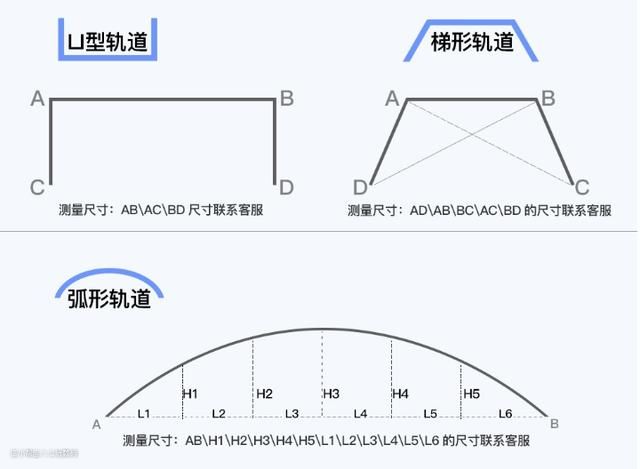 其他轨道需要测量不同点的尺寸,属于定制系列的电动窗帘了。