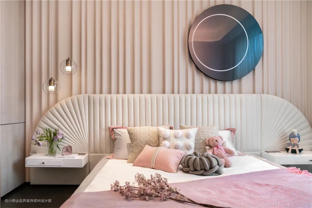 书房兼具客房功能,以增加卧室功能的使用。小孩房的设计强调个性与舒适。男孩房凸显个性上的率真,女孩房则希望体现特有的柔和特质,高级的莫兰迪色恰到好处地诠释了女孩的温和细腻。
