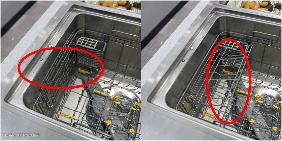 另外,摆放的时候只要按照碗篮设计去做,完全不必担心碗碟之间间距过小而导致洗不干净的问题。