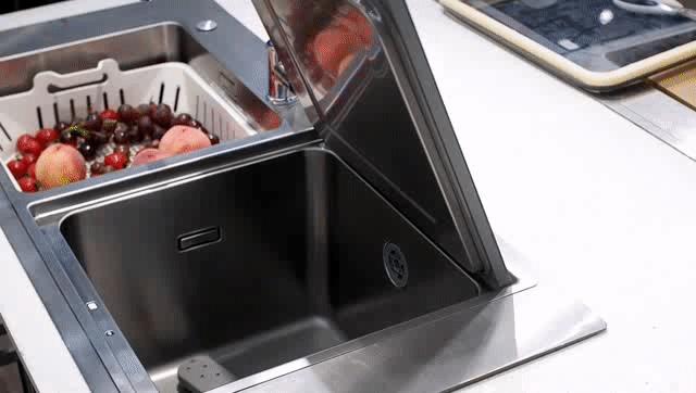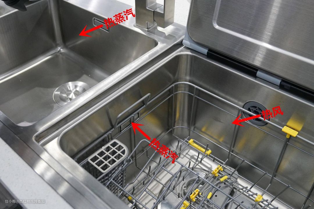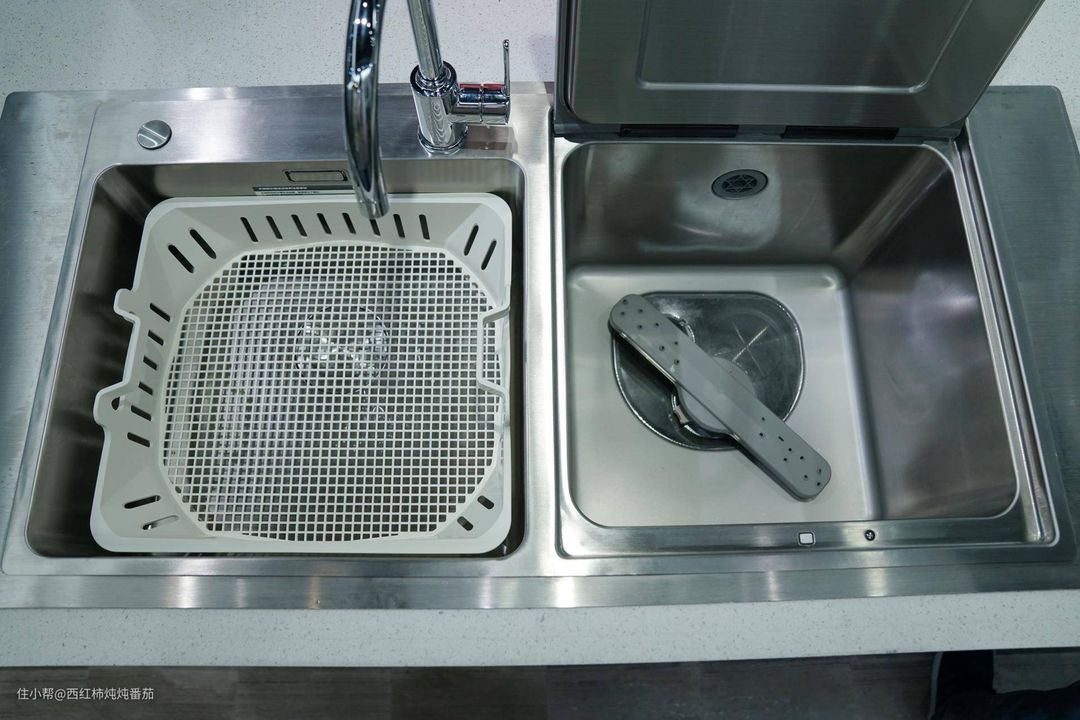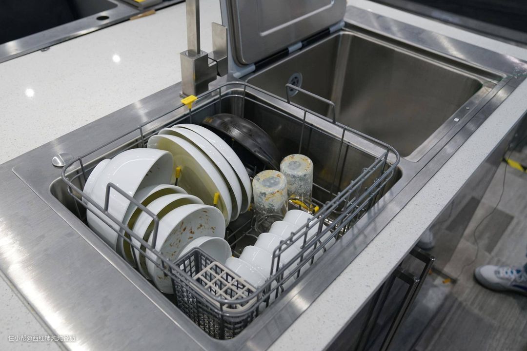 如果碗碟中有较大颗粒的食物残渣,不妨先整体放在左侧水槽用水龙头做个预冲洗后再放入右侧洗碗机槽内。
