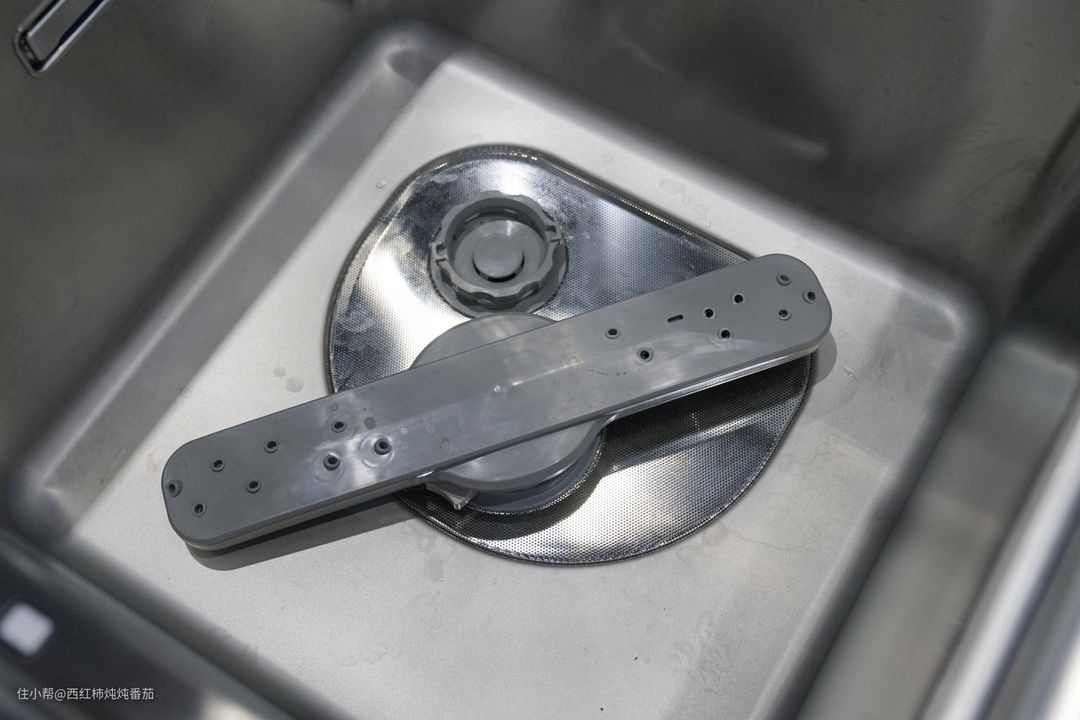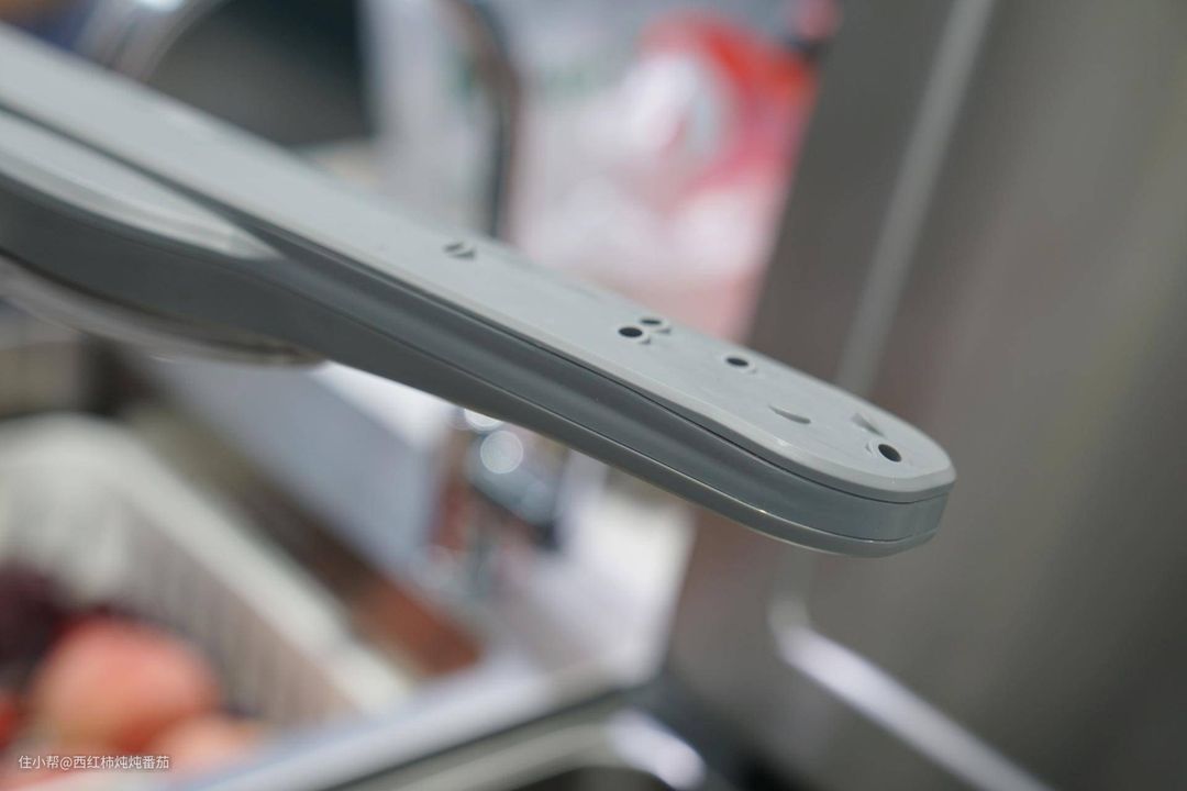 至于喷淋臂内部的水气混合设计则属于“黑匣子”,从外部无法一窥究竟。但是从这张特写不难看出,这款方太水槽洗碗机的喷淋臂厚度较大,共分三层,与一般洗碗机喷淋臂完全不同 ▲