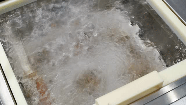 可以看到,超声波清洗仪在工作中有气泡产生 ▲