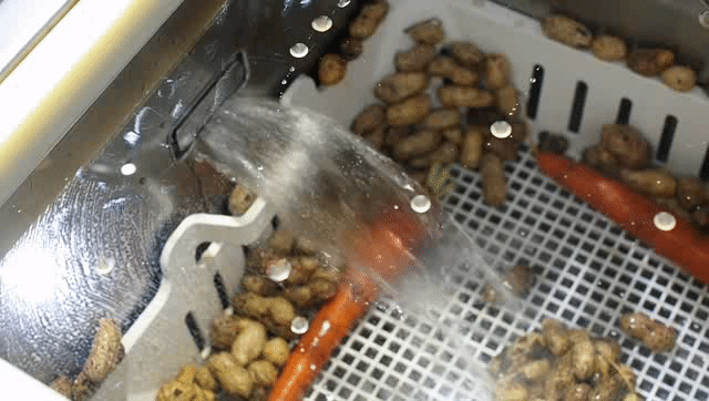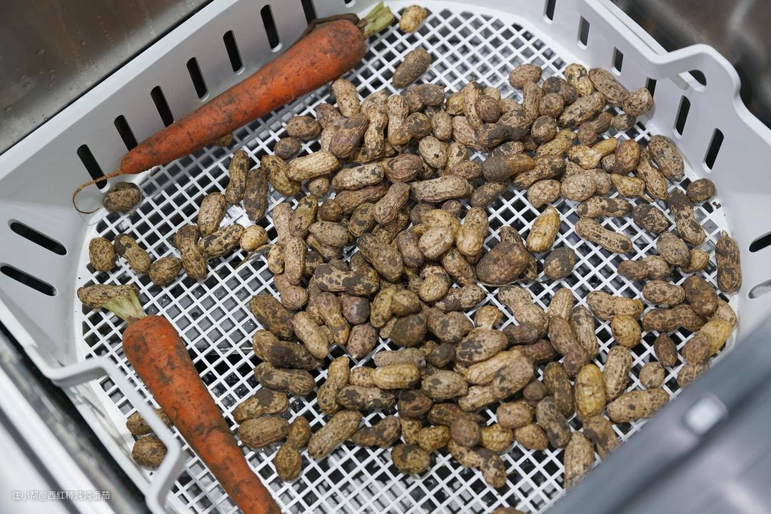 难度逐渐增大,下面一组洗净试验要看看方太新款水槽洗碗机对于牢固附着的淤泥的洗净能力。胡萝卜还好一些,洗不干净大不了就是去皮,但是洗花生实在是个体力活。