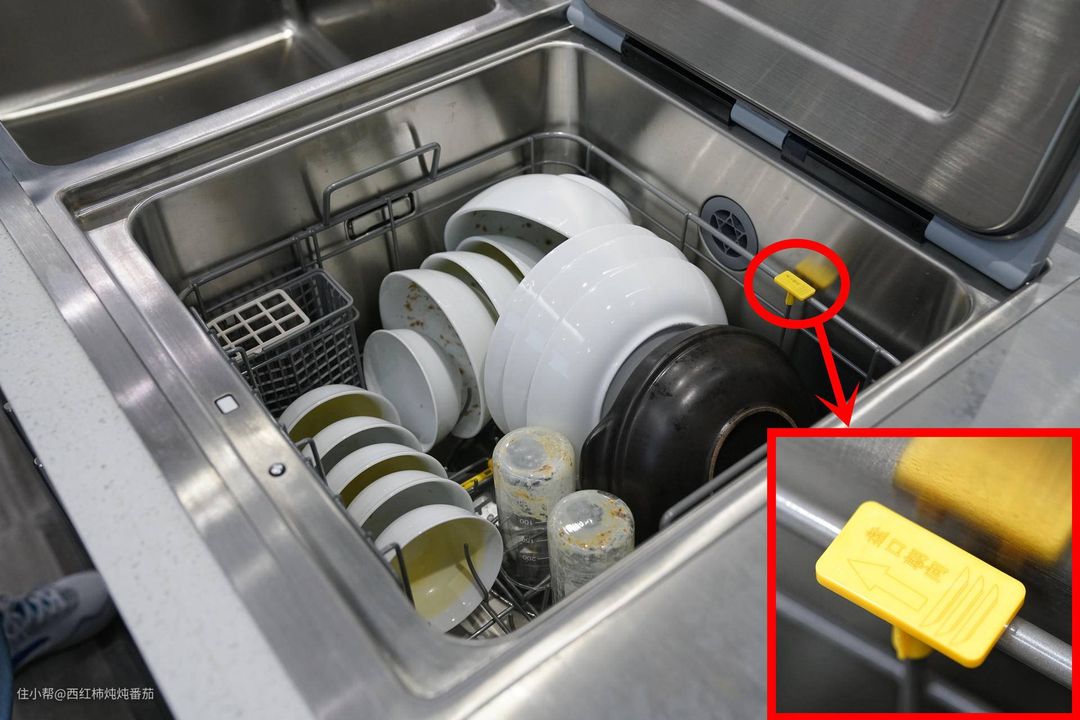 平时在家里使用的时候,可以观察碗篮边缘这块黄色指示牌来防止摆错 ▲