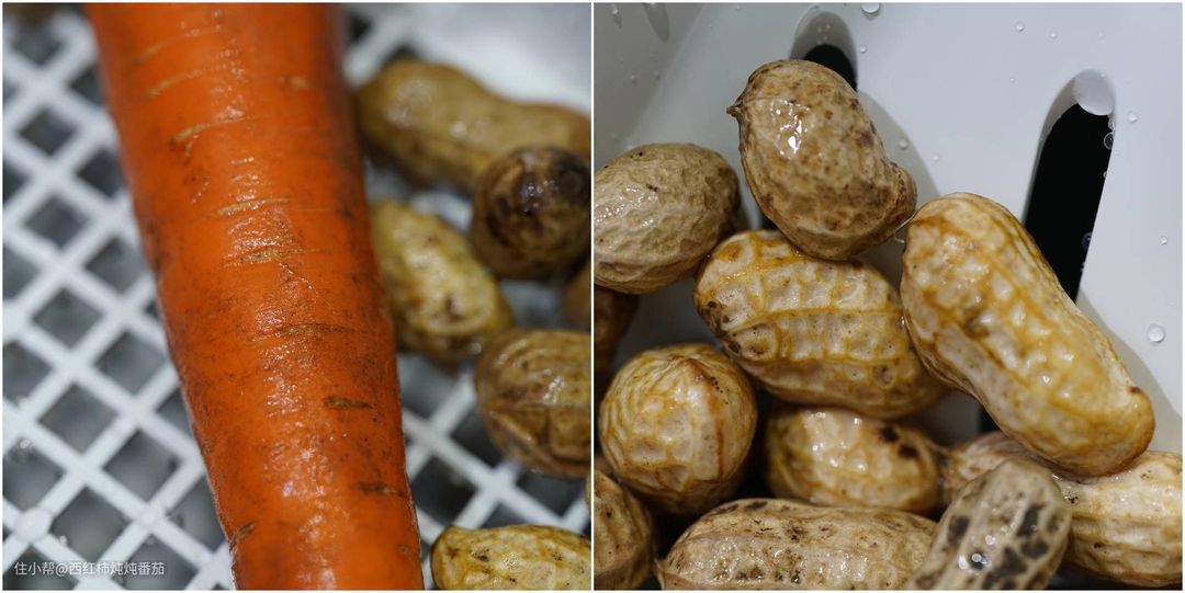 这是洗净后的胡萝卜和花生表面,跟洗涤之前的相比,可以称得上“脱胎换骨” ▲