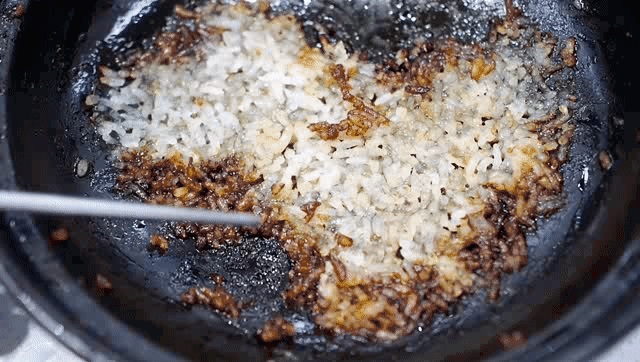 再比如做过煲仔饭的砂锅底部,有大量早已冷却又牢固附着甚至焦糊的饭粒 ▲