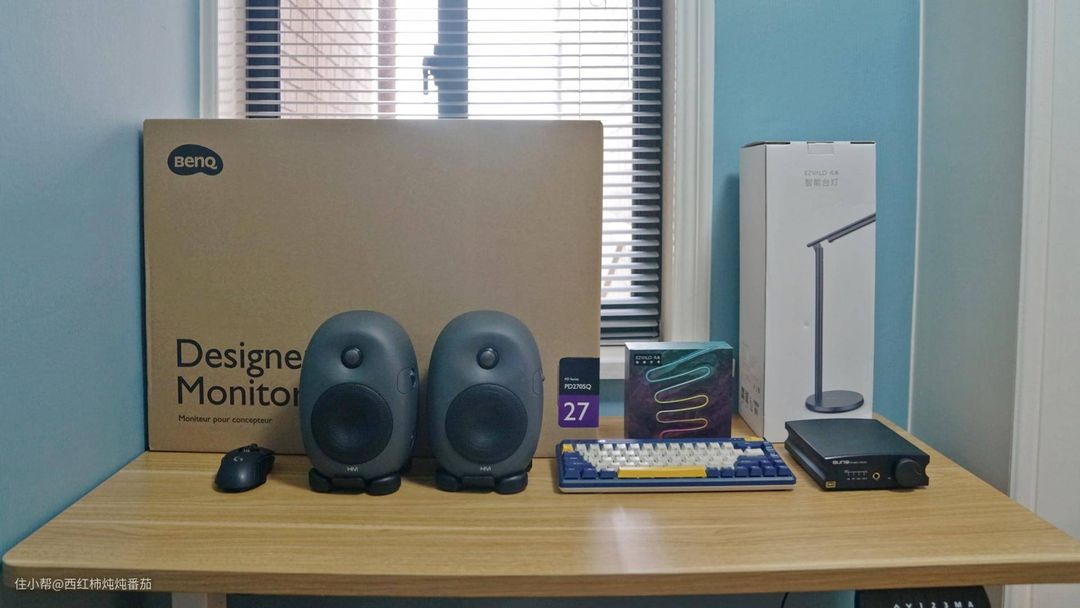 这些东西里面,一部分比如惠威的X4音箱、杜伽最新款的 fusion键盘以及罗技 G903无线鼠标,是楼主提前入手,已经在自己家里用了一阵子的;另外的诸如明基的 PD2705Q显示器刚刚到手;几光的灯带以及台灯入手已有时日,属于囤货。