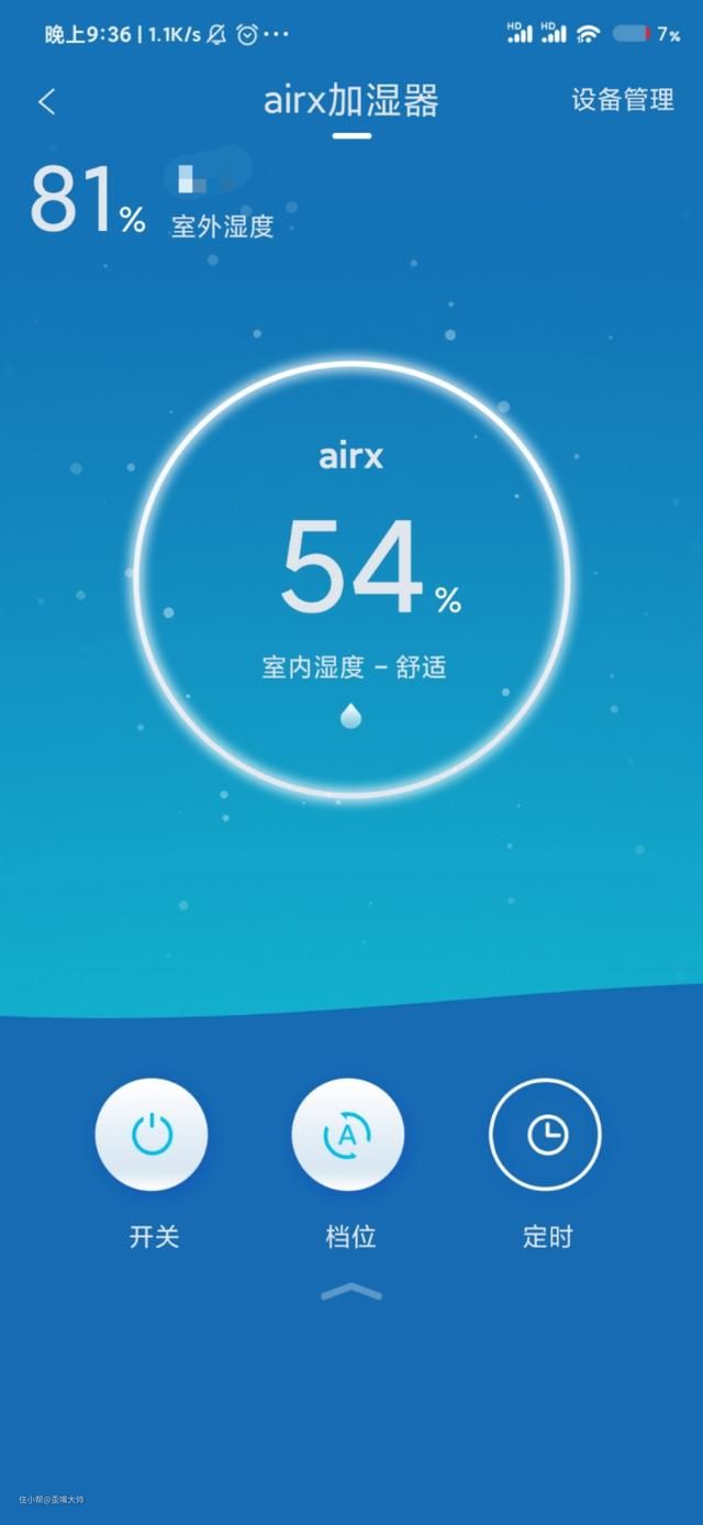 其次AIRX加湿器,噪声属于平稳持续的扇叶转动声;