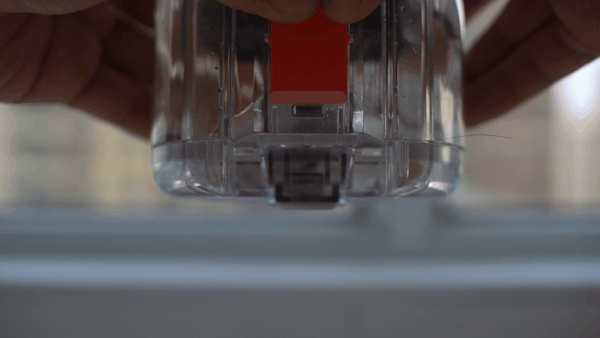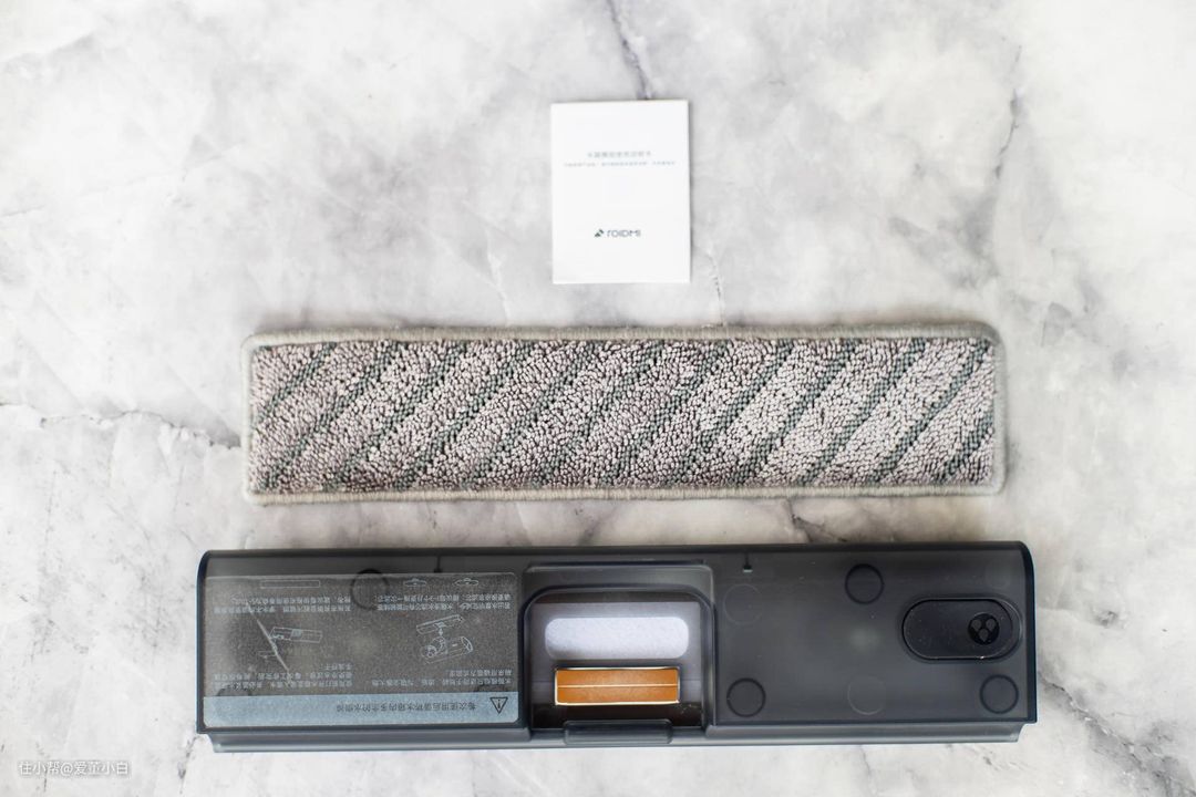 ▲▲水箱模组。与吸尘器的地刷通过磁吸方式固定,实现吸拖一体。模组是半透明的材质,方便观察剩余水份。右边位置为注水口,打开即可注水。