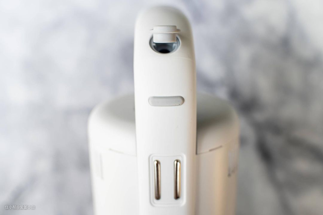 ▲▲把手处顶部是充电口,下部是充电触点。支持充电器直接插入充电及墙细充电盒充电。两种充电方式的设计在多场合上充电还是很方便的。