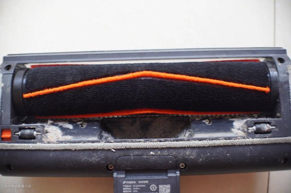 ▲▲因为手动吸拖不可能像扫地机器人一样规划好路线不走回头路,我们还是习惯于往复运动的,所以这些粉尘细毛的就沾上水变成了泥状贴在了滚刷后面(实在不是很好看就打个码吧,贴了一层就是了,可以看下我上面测试毛发的那张照片,虽然是清理之后的,两边仍有一层痕迹)。而地刷因为是电动的不能水洗,清理起来会有些头疼。而滚刷再次验证了如介绍那样,确实防水抗污,没看到有多脏,依然要点个赞!