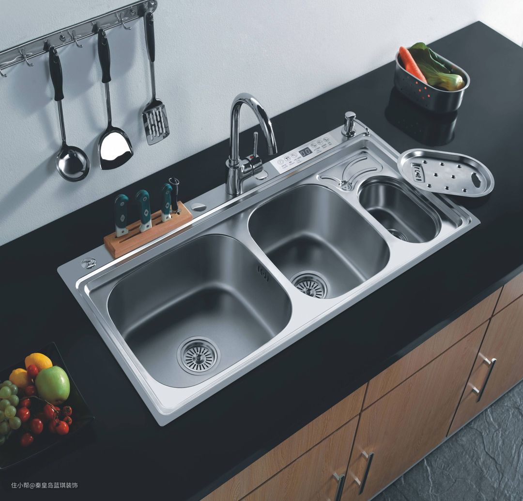 当然,除了以上三点,还有最重要的一点就是根据厨房的面积来选择单槽还是双槽好,若是厨房面积较小,那么单水槽是最为合适的,虽然只有一个水槽,但是现市面上的水槽都会配备一个沥水篮,这样蔬菜瓜果等不沾油腻的东西则可以通过沥水篮来清洗放置;若是面积较大,那么单水槽和双水槽都可以选择,只需根据生活习惯来选择就好。正所谓萝卜青菜各有所爱,选择自己喜欢的用具才能在做饭的过程中保持愉悦的心情,做出来的饭菜才更加美味可口。
