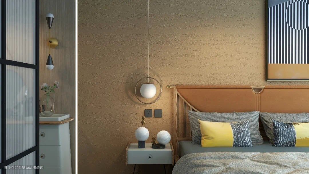黑色,在五行中属水,是相当沉寂的色彩,所以一般没有人会用黑色装饰卧室墙面。很多人将其用在卫生间,但也要讲究搭配比例。