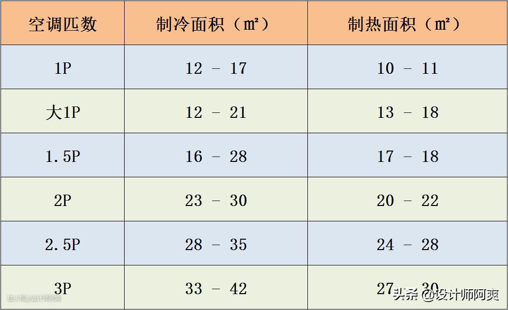 看到采暖,先搞清楚有几种可以选。上次说过的中央空调在冬天也可以当做采暖设备。可以参考下方的匹数(功率)。