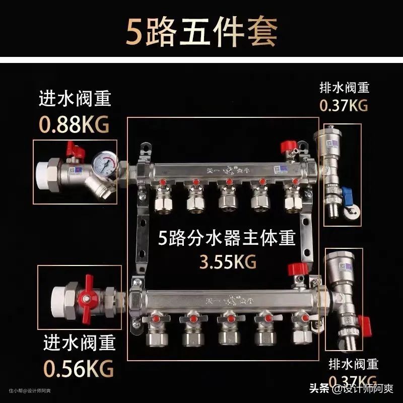 ▲ 这种是5路分水器,可供100㎡的铺设面积。