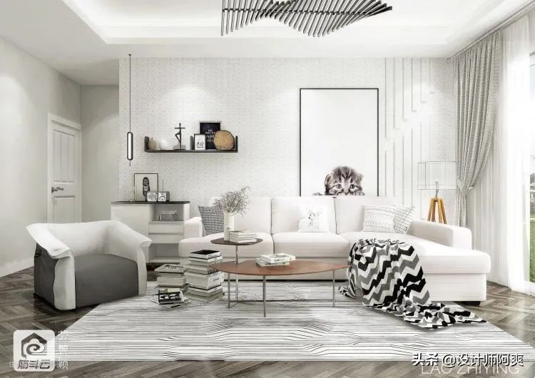 ▲ 地方小沙发小,不容易预估沙发的位置,留出边边不铺就行了。地方大的话,可能人家也不在意多铺3、4㎡?
