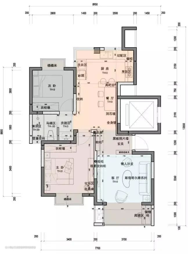 90㎡小户型设计干货满满,双卧室+三分离卫生间+开放式厨房,