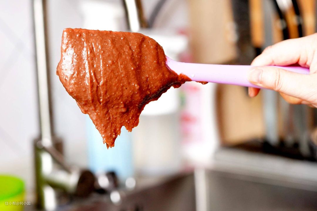 直到面糊从刮刀上滴落的时候呈倒三角状态