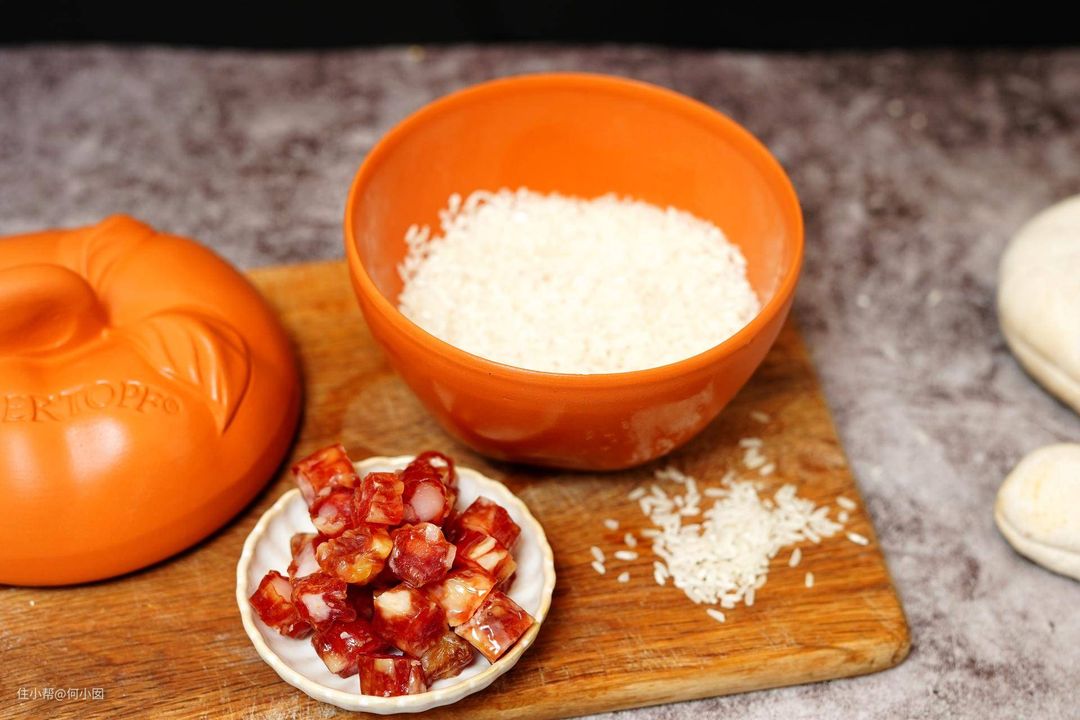 有时一个人,懒得出去吃,外卖又太难吃,怎么办?当然是抓一把米,切一根香肠来一份煲仔饭啦,煲仔饭在我一人食的菜单里是排第一的,曾经写过一篇非常详细的煲仔饭做法的文章,可以戳这里,什么?烤箱还可以做煲仔饭,开眼界了吧,那我们来看看怎么做