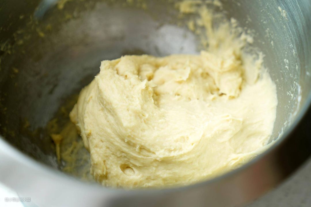 此时面糊应该是细腻有光泽的,如果此时还有蛋液剩下,就不要再加了